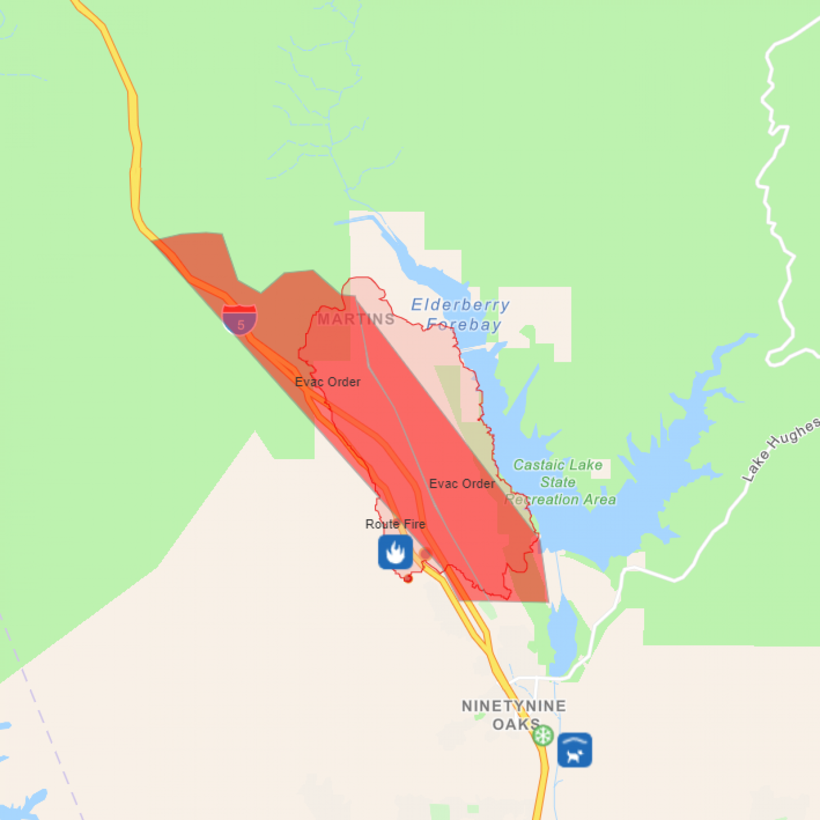 California Fire Map, Update as Route Fire in Castaic Sparks
