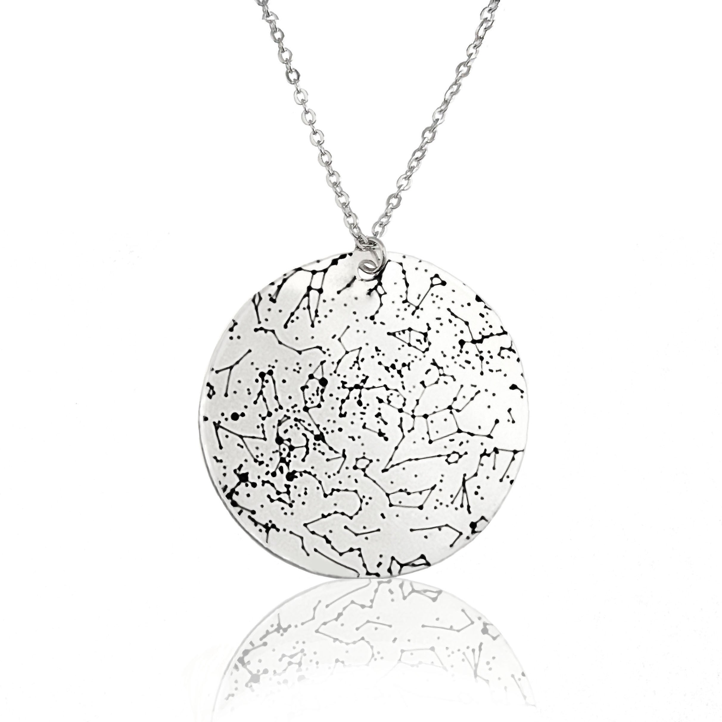 Custom Star Map Sterling Silver Necklace Large Size – StarMapJewelry